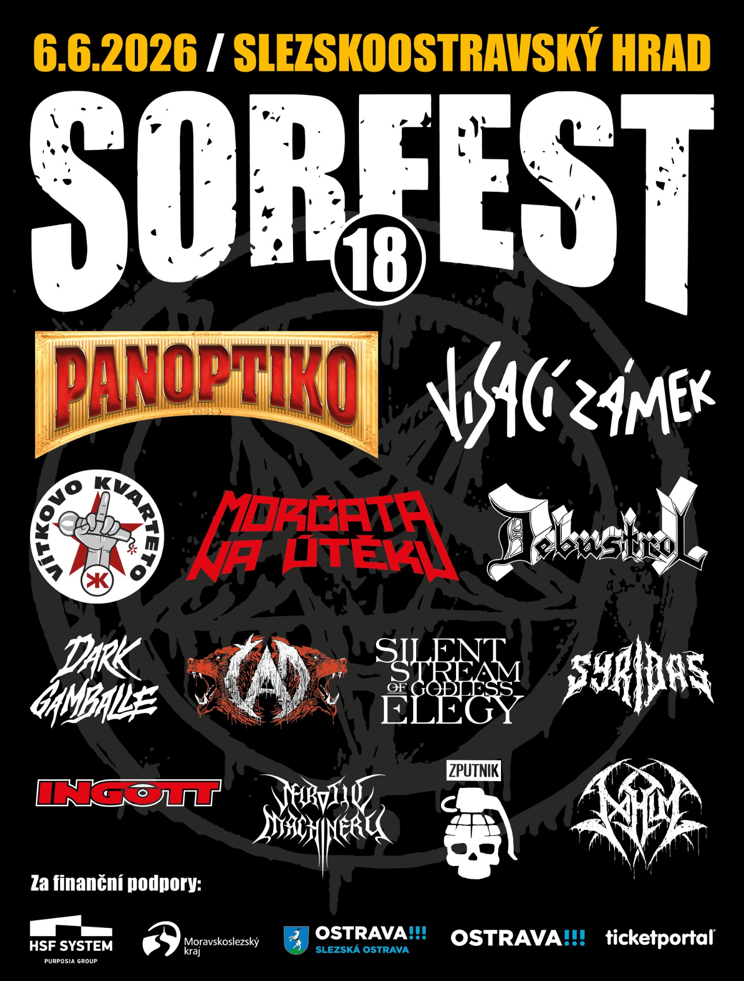 A na hlavním pódiu představíme v letošním roce také sedm exkluzivních smeček, které si zaslouží Vaši pozornost...Pojďme si všichni užít nádherné prostředí Slezskoostravského hradu s exkluzivním zázemím hradního nádvoří, teras, které budou přístupné pro všechny návštěvníky, spoustu stánků s občerstvením a hlavně velkou stage se skvělým zvukem a světelnými efekty,,,No a to hlavní...Vystoupí zde ADOR DORATH, SKRAT, TÖRR, KRUCIPÜSK, ALKEHOL, BIJOUTERRIER a MOTORBAND. Těšíme se na Vás, i rockeři mají své dny...